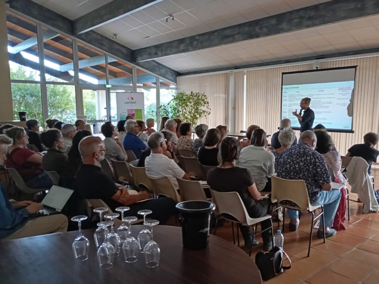 60 personnes sont venues assister à notre afterwork pré-vendanges, fin août, organisé en partenariat avec les Œnologues de France et les Vignerons Bio Nouvelle-Aquitaine, à Planète Bordeaux.